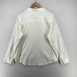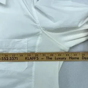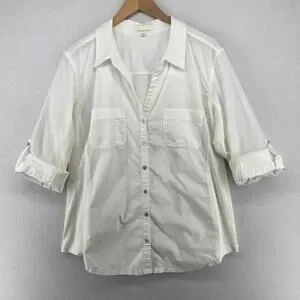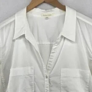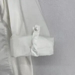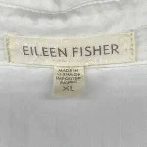 EILEEN FISHER Shirt XL Organic Cotton Woven Roll Tab Sleeve Button Front White