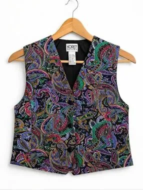 Vintage Koret Petites Paisley Vest Size 4P Multicolor Button Front Boho Retro