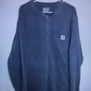 Classic Carhartt henley with chest pocket and logo patch. Soft, washed fabric for broken-in comfort. Button-front placket and relaxed fit for easy layering.