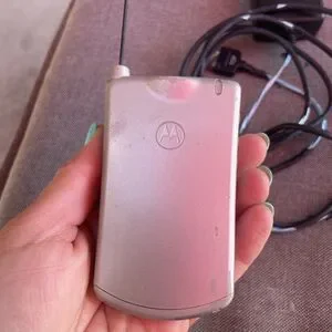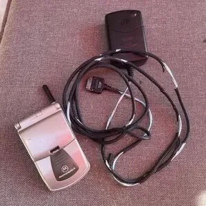 Footage flip phone with extendable antenna. Turns on no network, but the battery does hold a charge and appears to be in good working order. Original charger included. The black rubber coating on the cord of the charger is flaking off. Doesnt really impact how the charger works, but see pictures for details. Selling as is.
