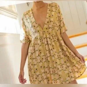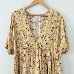 Natural Life Stella Mini Dress with a gold leaf floral print Size L/XL