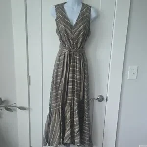 NEW Calvin Klein Gray and Green Sleeveless V-Neck Maxi Sundress