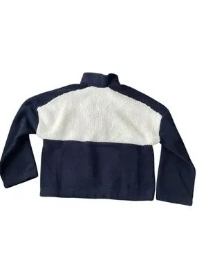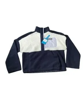 Soft sherpa pullover with a half snap front placket front for easy layering. Front pocket and chest patch for style. Cozy and warm for cool-weather wear. Easy to pair with casual outfits.