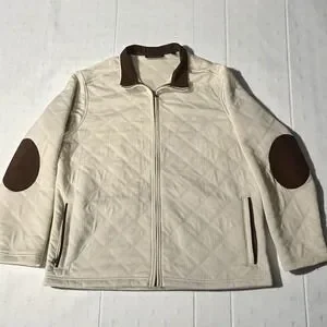 Cremieux Mens XL Quilted Jacket Cream Brown Elbow Patch Full Zip Excellent