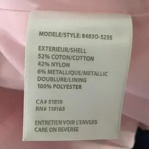 Materials: Shell 52% cotton, 42% nylon, 6% metallic; lining 100% polyester.