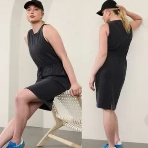 Athleta NWT Seasoft Midi Elastic Waist Sports Dress size Large Soft Black Black