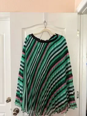 Flowy pleated skirt. Slight stretch in waistband. Colors are so vibrant and pretty! Best for m-l