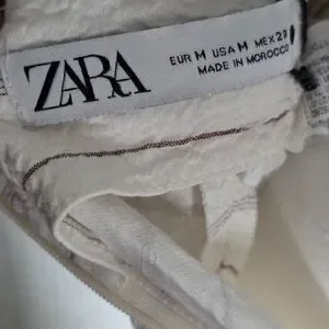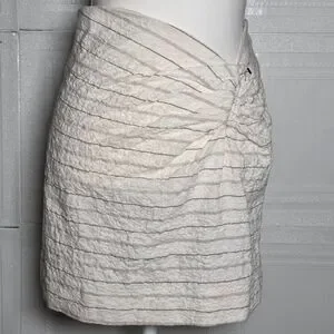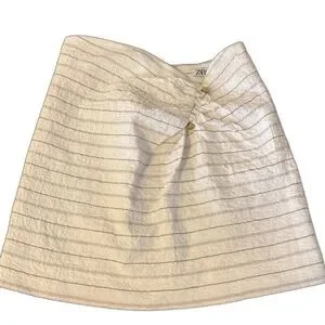 Zara NWT White Textured Draped Pareo Mini Skirt Striped Size M