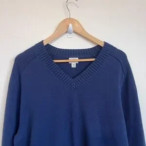 J Crew Mens Heritage Cotton V-neck Sweater Size M Blue Heritage Classic Preppy
