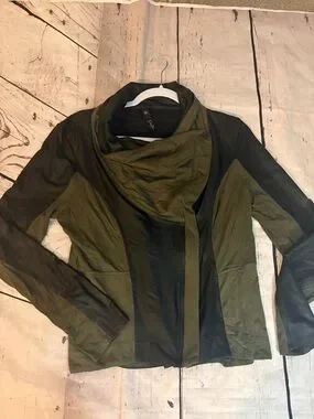 Women’s Jessica Simpson Olive Green & Black zip up Draped neckline Jacket large