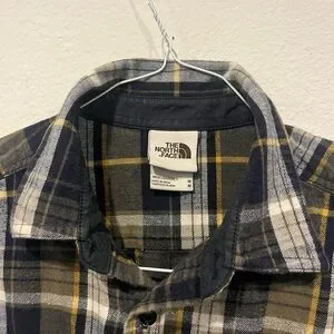 The North Face Men’s Blue Plaid Flannel Button Shirr Size Medium Cotton EUC