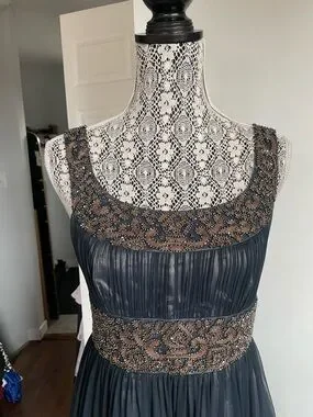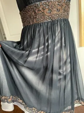 Gorgeous Adrianna Papell 100% Silk Cooper and Onyx Beaded Evening Party Dress. With Tulle For Volume. Size 8.