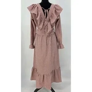 Aiden Red Gingham Maxi Dress Medium Prarie Style Tiered Ruffle Cottagecore