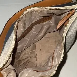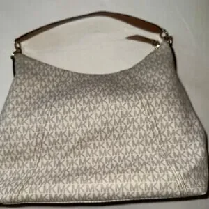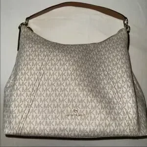 Michael Kors Sienna Large Logo Shoulder Bag in the color White/Acorn.
