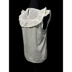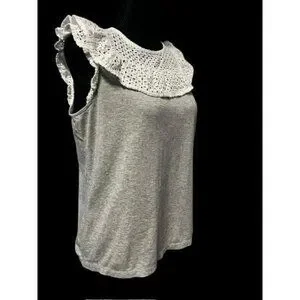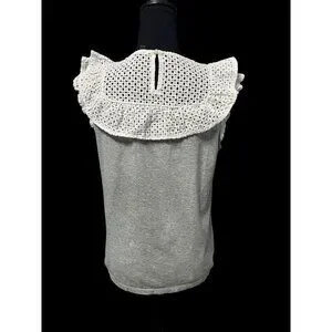 J. CREW RUFFLE WOMEN TOP, GREY/WHITE, WORK ATTIRE, WESTERN, COTTAGECORE