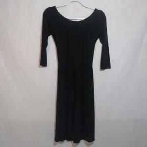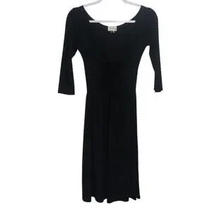 Anthropologie Lolly Black Knot Ruched V Neck Modal Simple Classic Dress Sz XS