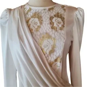 1970s Diamond's Run White & Gold Metallic Lace Dre