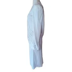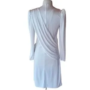 1970s Diamond's Run White & Gold Metallic Lace chest, back zip, polyester Dress in excellent condition. Measurements: bust 34"/waist 31"/hips 36"/length 40.5"