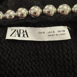 Zara Pearl Bow Chunky Knit Cardigan Size S Wool Blend Whimsi Feminine Coquette