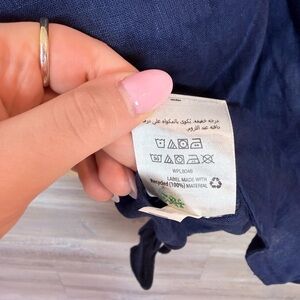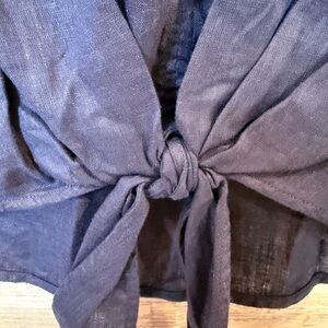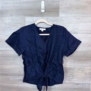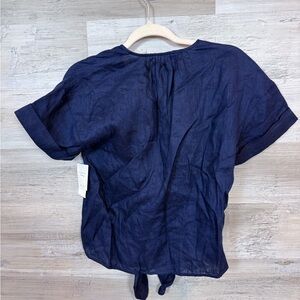 NWT Charter Club Luxury 100% Linen Tie-Front Top Intrepid Blue Small