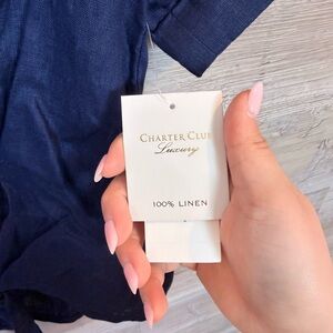 New with tags! Elevate your warm-weather wardrobe with this sophisticated Charter Club Luxury Linen top. Crafted from breathable, high-quality linen, this blouse features a flattering V-neckline and a stylish tie-front detail at the waist.