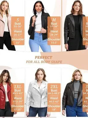 The Women's Faux Leather Moto Biker Jacket is crafted from high-quality faux leather, providing a stylish and cruelty-free alternative to genuine leather. The moto-style design adds a trendy and edgy look to the jacket.