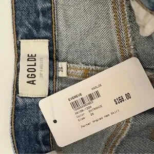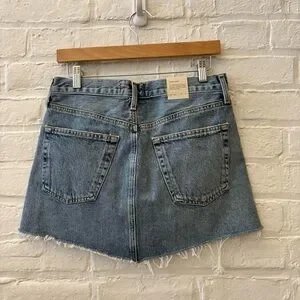AGOLDE || Parker Angled Hem Denim Mini Skirt Entrance Medium Wash Raw Hem 26 NWT