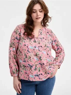 Airy cotton gauze blouse from Style & Co featuring a soft floral print on a pink ground.