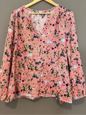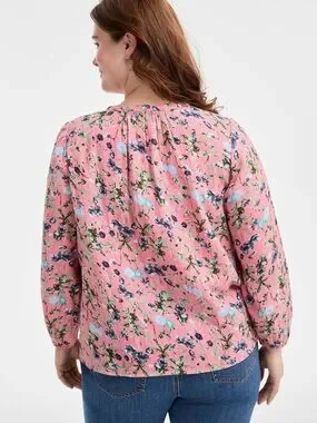 Style & Co Floral Cotton Gauze Blouse Top Long Sleeve Pink Boho Peasant Fairy 3X