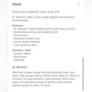 Dr Martens 1460 Butterfly Print Suede Lace-Up Boots Size 7 NWT