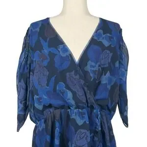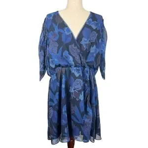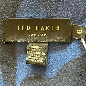 TED BAKER JULEAH RUCHED SLEEVED MINI DRESS BLUE, US SIZE 16-18 NWT