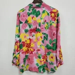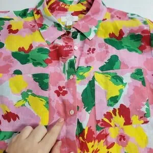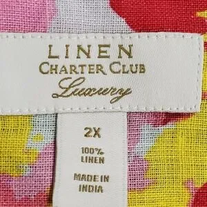 Charter Club Womens Long Sleeve Linen Button Up Top Size 2X Floral Beach Coastal