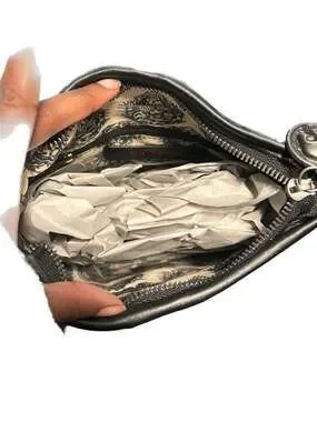Interior zip pocket and patterned lining.