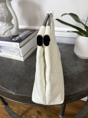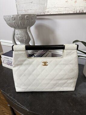 Chanel White Caviar Quilted Melrose Cabas Wood Handle Bag