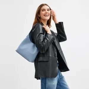 Natural grain leather Inside snap pocket Magnetic snap closure Handle with 10 1/2 drop 11 (L) x 11 (H) x 3 1/4 (W) Style No. CU068