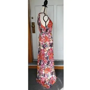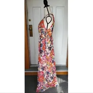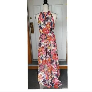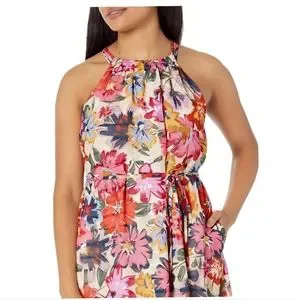 Maggy London Floral Printed Halter Maxi Dress w/ Waist Tie