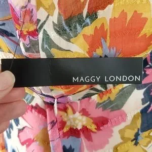 NWT Maggy London Floral Printed Halter Maxi Dress w/ Waist Tie, Size 8