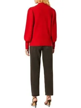 French Connection Sofia Balloon Sleeve Mock Neck Ribbed Knit Sweater Red Small