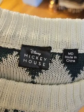 Disney Crewneck Mickey and Minnie Holiday Sweater in White, Green & Red Sz Med