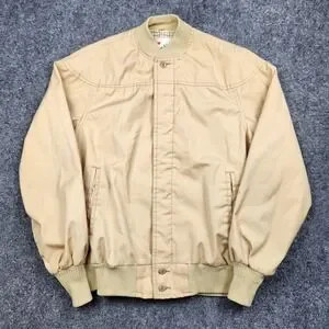Vintage Land-N-Lakes Jacket Mens Medium Beige Cotton Bomber Talon Zip Lined 60s