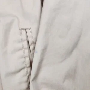 Color: Solid beige outer shell with coordinating rib knit collar, cuffs, and waistband.