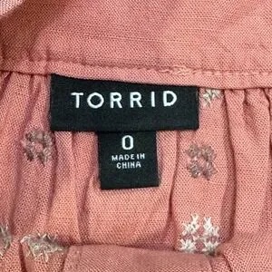 Torrid Linen Eyelet Tunic Embroidered Size XL Square Neck Flutter Boho Hippie