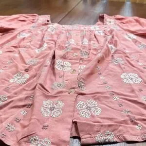 .The Torrid Linen Eyelet Tunic in size XL is a stylish and comfortable choice for women looking for a floral patterned top with a square neckline. Made from a blend of rayon and linen, this boho hippie inspired blouse features embroidered accents and flutter sleeves, perfect for various occasions such as travel, parties, or casual outings. The pink color and festive theme make it a versatile and eye-catching addition to any wardrobe, whether for winter, summer, fall, or spring. The regular fit and plus size ensure a flattering and relaxed look for the modern woman.