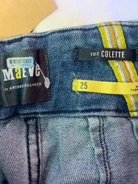 Cropped high-rise jeans with a straight, slightly wide leg. Front patch pockets and a single button closure. Medium blue denim with subtle fading for a lived-in look. Stylish and easy to pair with casual tops. Size 25 from Anthropologie from the collection of Colette ! They are petite but they can be used as cropped jeans I take offers