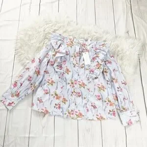LoveShackFancy Beatrix Womens Floral Long Sleeve Top in Lavender Moon Size Large
