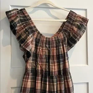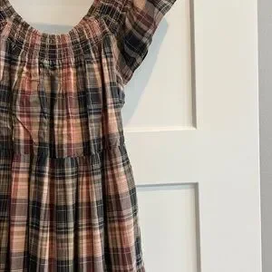 The perfect everyday dress and it has pockets! The colors of this dress are perfect — I tried to get a close up picture on the listing. The straps can go on the shoulders or off the shoulders (from work to night out look!) the dress is 100% cotton and is full length. Would be perfect with a pair of white sneakers or Maryjane’s and a leather jacket once the weather cools!