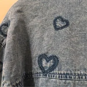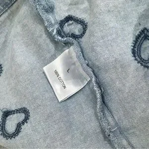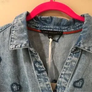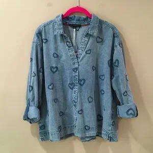 NWT Jane And Delancey Womens L Shirt Heart Print Embroidery Blue Chambray Button