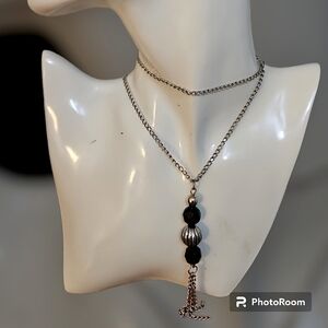 5/$25 Silvertone Chain Beaded Tassel Necklace