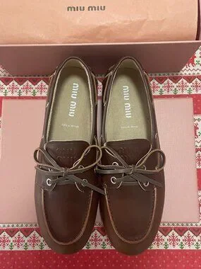 Elegant Miu Miu Brown Leather Women's Boat Shoes