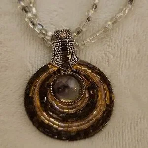 Vtg BEST 1980s Glass Beaded Round Pendant Witchy Necklace